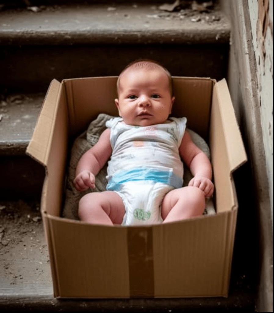 Då hörde hon ett svagt gråt, alldeles för svagt för att vara en slump. Christinas hjärta började slå snabbt. Hon gick mot ljudet och fann ett litet paket i ett hörn, hastigt insvept i en tunn filt. Inuti låg en nyfödd pojke, med bleka kinder och läppar blåaktiga av kylan eller hungern.