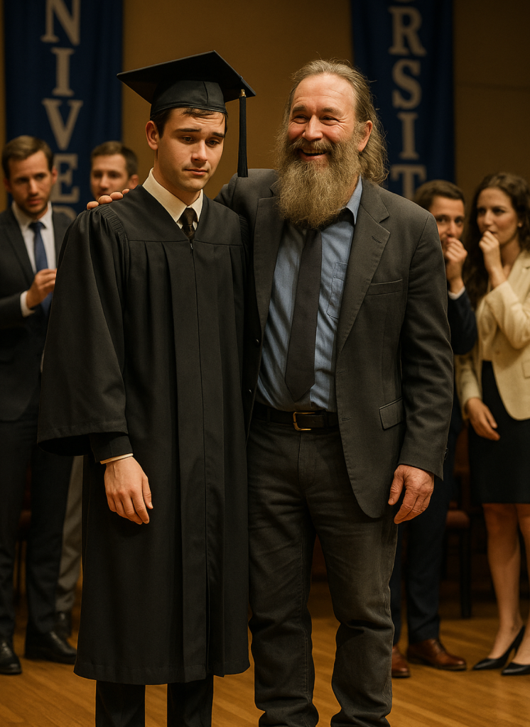 ”Den här mannen,” sa jag, ”var inte min pappa i blodet. Men han räddade mig när jag var fjorton, när ingen annan skulle ha gjort det. Han gav mig mat, ett hem, regler och kärlek utan att någonsin be om något i gengäld.