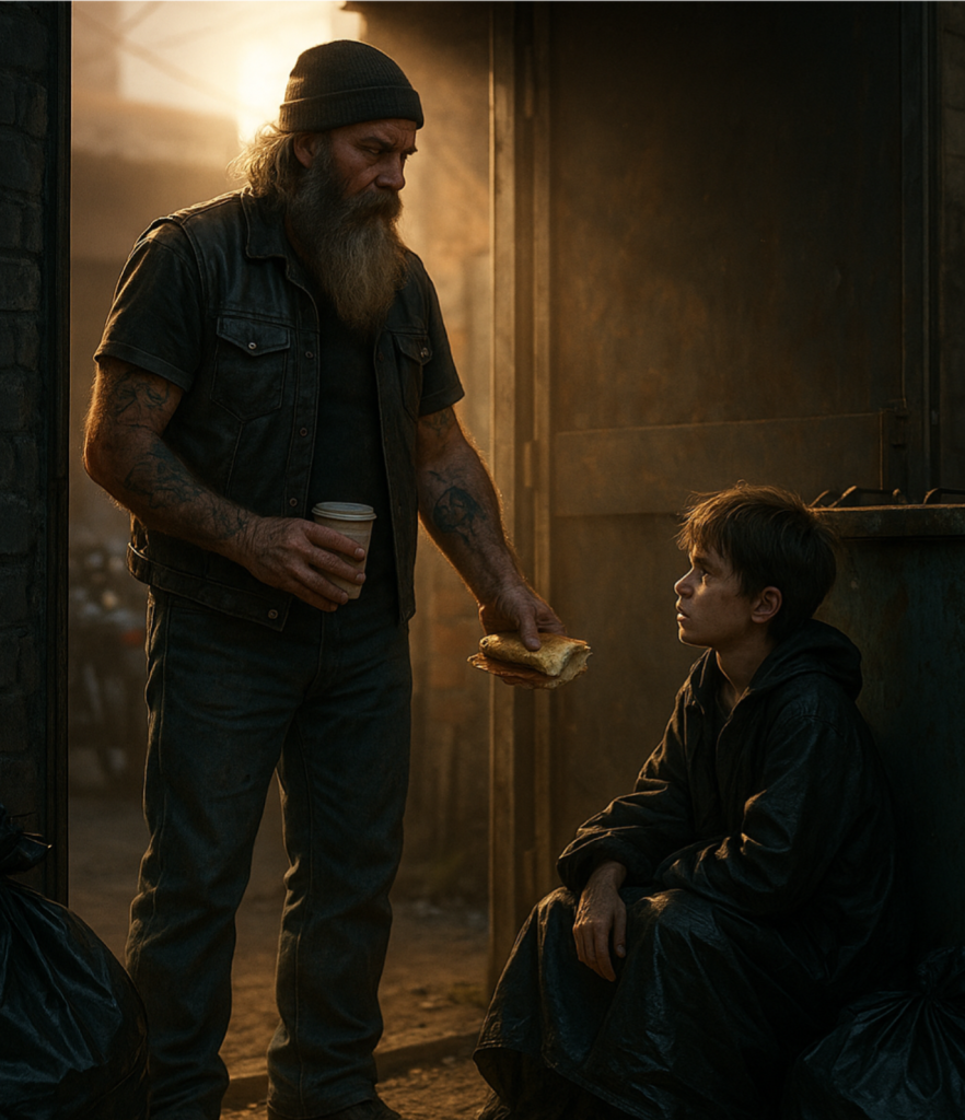 “Är du hungrig, unge? Kom in.”Fem ord. Fem ord som skulle förändra mitt liv för alltid.Jag hade rymt från mitt fjärde fosterhem. Ett ställe där den så kallade ”adoptivpappan” hade smutsiga händer och ett strängt uttryck, och kvinnan i köket låtsades som om hon inte såg något.