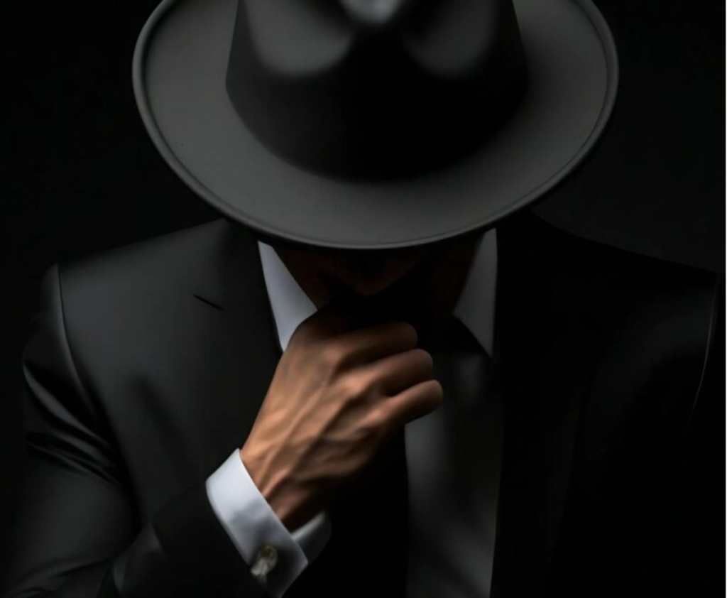 Mannen i svart ryckte till, ögonen vidgades i chock. På ett ögonblick vände han sig om och sprang nästan, försvann in i gårdens mörker.
