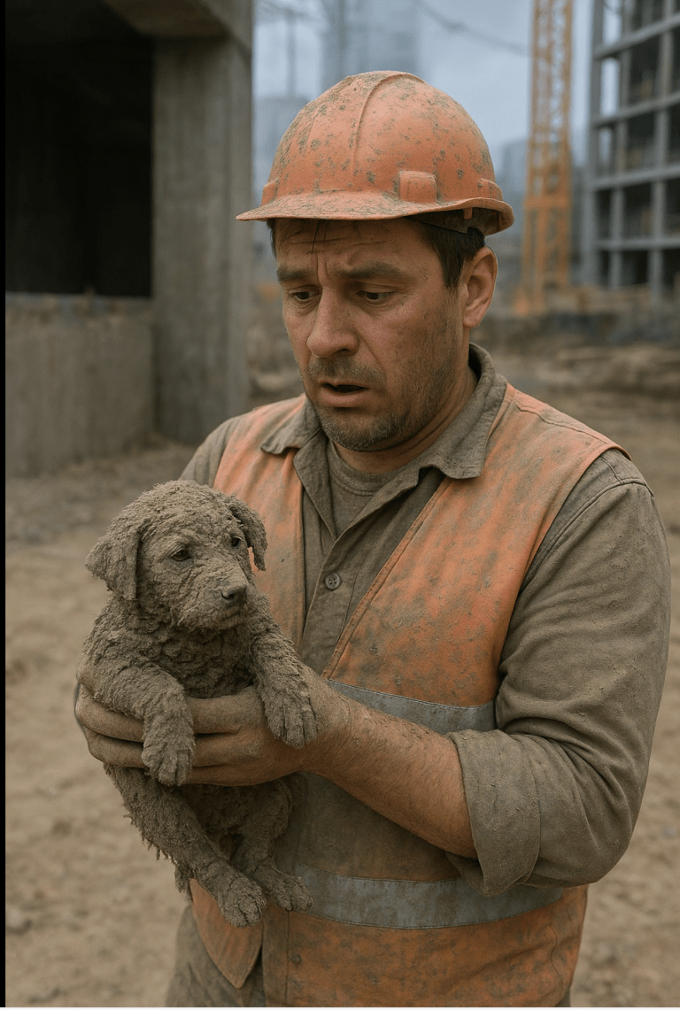 Och även om byggplatsens buller fortsatte i bakgrunden, gav den enorma schäferns närvaro allt en ny mening — och visade att mirakel kan hända där ingen väntar dem.