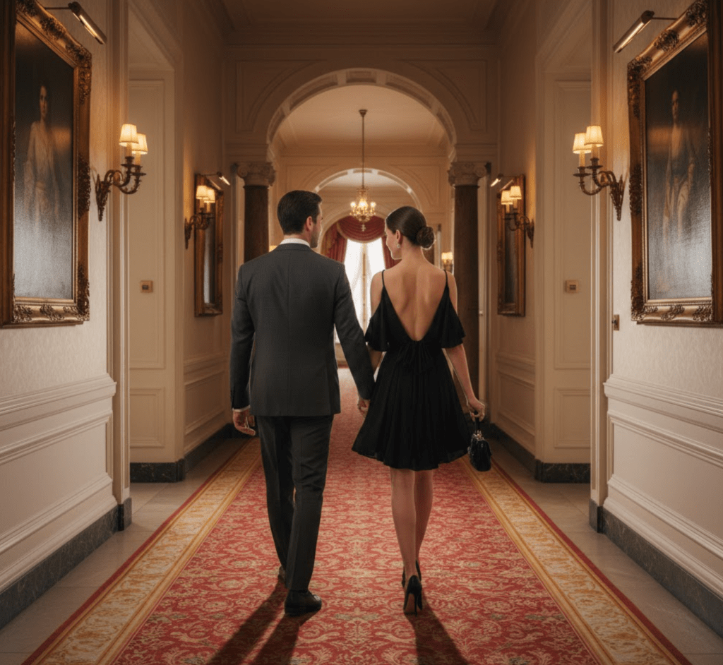 Ett isskott gick genom ryggen. Magen knöt sig. Jag frågade om det fanns en rumsbokning i hans namn. Det gjorde det… men något kändes fruktansvärt fel.Jag tog hissen och steg ut på våningen hon nämnt. Och där såg jag det — bilden som skulle etsa sig fast för resten av mitt liv.