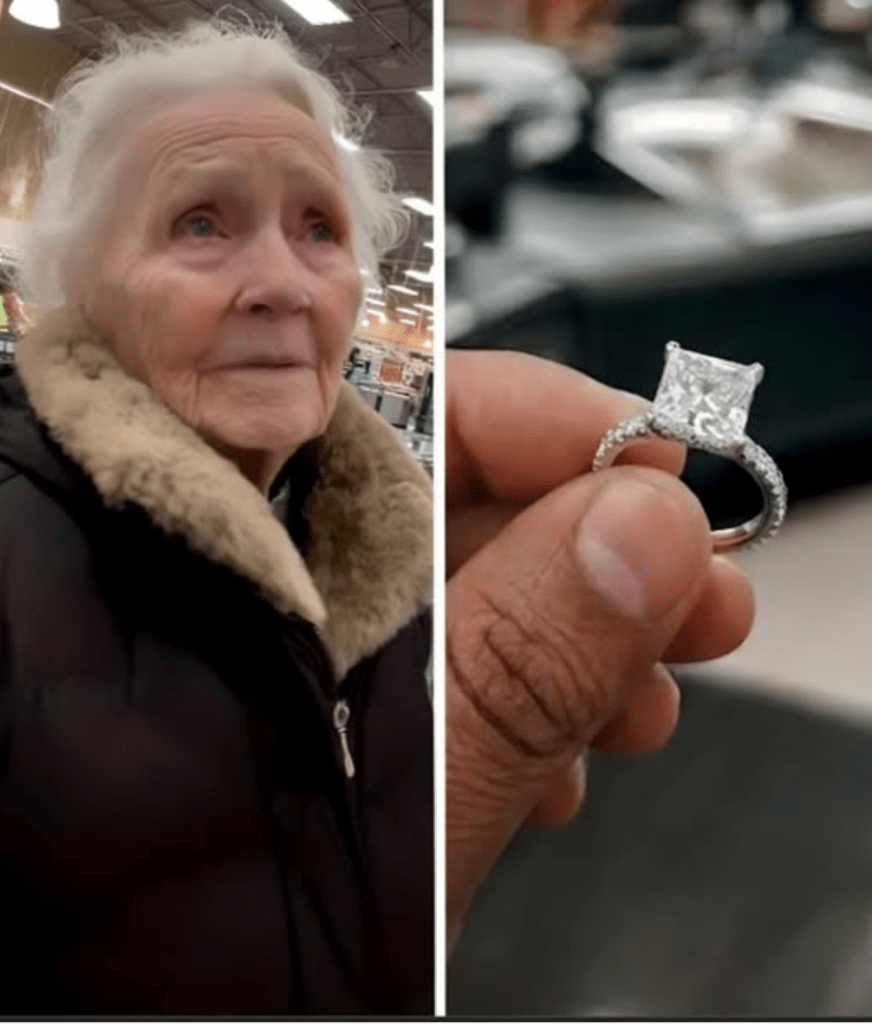 ”Det här var min mans gåva till vårt femtioåriga bröllopsjubileum”, viskade hon. ”Han dog för tre år sedan. Jag bär den varje dag.”Hon höll försiktigt ringen mot sitt hjärta. Tårarna rann nerför kinderna, men hennes röst förblev mjuk:”Tack… tack så mycket.”