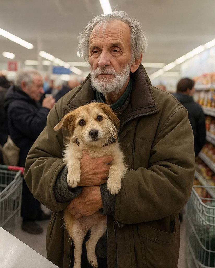 Jag var sju månader gravid, utmattad och nästan på bristningsgränsen när jag såg honom för första gången – en äldre man med trötta ögon, böjda axlar och en risig liten hund som tryckte sig mot hans ben som om det var hans sista ankare i världen.