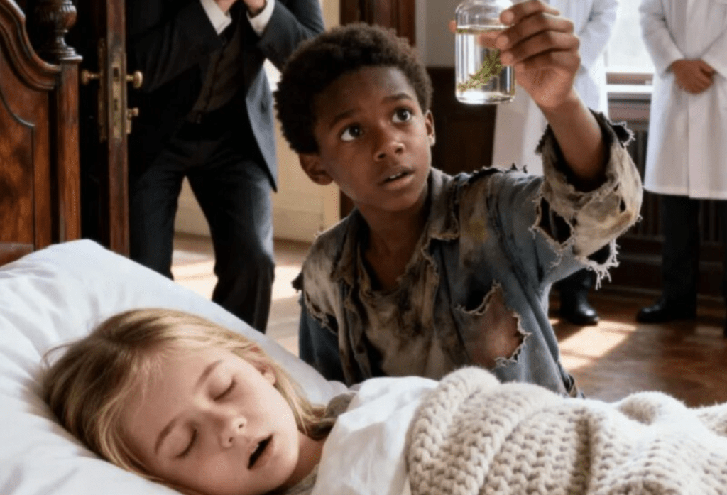 Nathan knäböjde, genomblöt till benen, och tog flaskan. Den var varm.„Om det finns ens en chans…,“ viskade han. „Jag tar den.“De sprang.Inne i herrgården gick larmet. Läkare rusade till, men Nathan gick in och satte flaskan mot Lilas läppar.