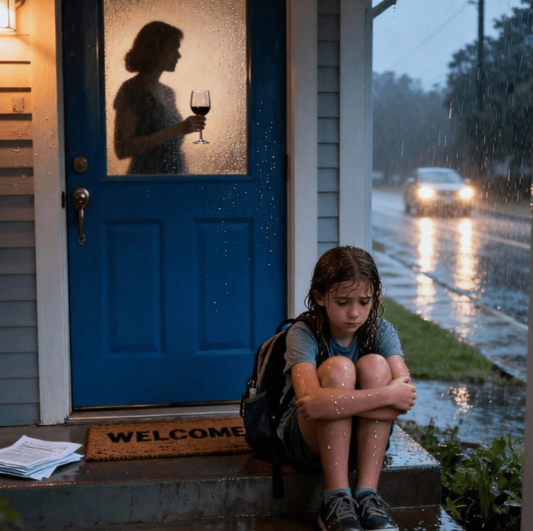 ”Hannah, lyssna på mig. Är du trygg?””Jag står på verandan. Det regnar fortfarande.””Stanna där. Rör dig inte. Jag kommer nu.”Jag bad inte om tillåtelse. Jag ringde min chef:”Familjeakut. Min dotter står ute i regnet.”Han började ifrågasätta mig, men tystnade när han såg mitt ansikte.