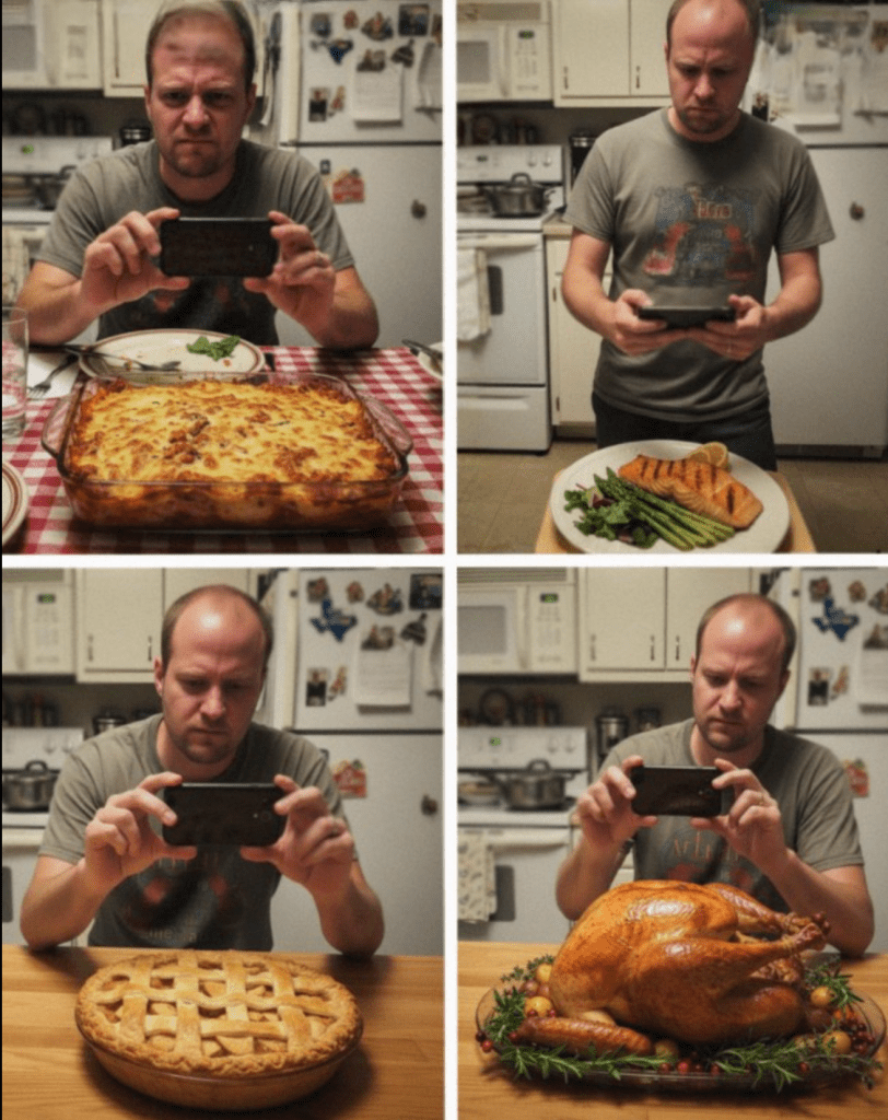 Varje kväll, precis innan maten, stannade Ryan med gaffeln över tallriken och tog upp telefonen.”Iris, vänta älskling,” sa han, med handen upplyft. ”Vi skickar ett foto till mamma. Hon älskar att se vad vi äter!”