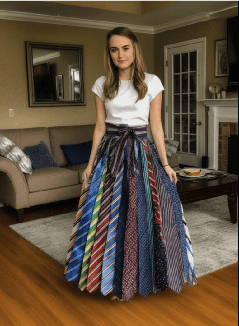 Promnatten var magisk. Folk frågade om min kjol. Jag berättade att den var gjord av min pappas slipsar. Lärarna grät. Vännerna kramade mig. Jag dansade tills mina fötter brann, skrattade tills mitt bröst kändes lättare än på månader. Jag fick ett band för ”mest unika klädsel”, och rektorn viskade att min pappa skulle varit stolt.