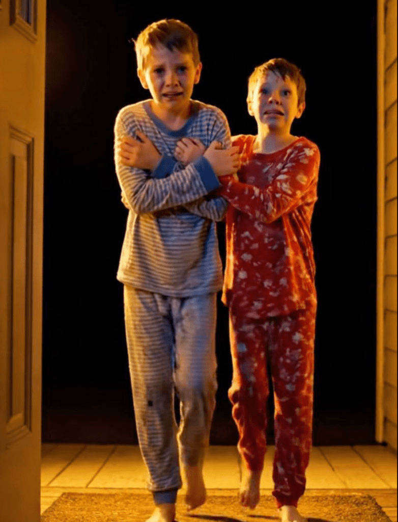 Två små silhuetter stod på min veranda. Mitt hjärta nästan stannade.Jake och Tommy, mina åtta- och sexåriga brorsonsbarn, skakande i sina pyjamasar, barfota på det våta trägolvet.Jag svingade upp dörren hastigt.