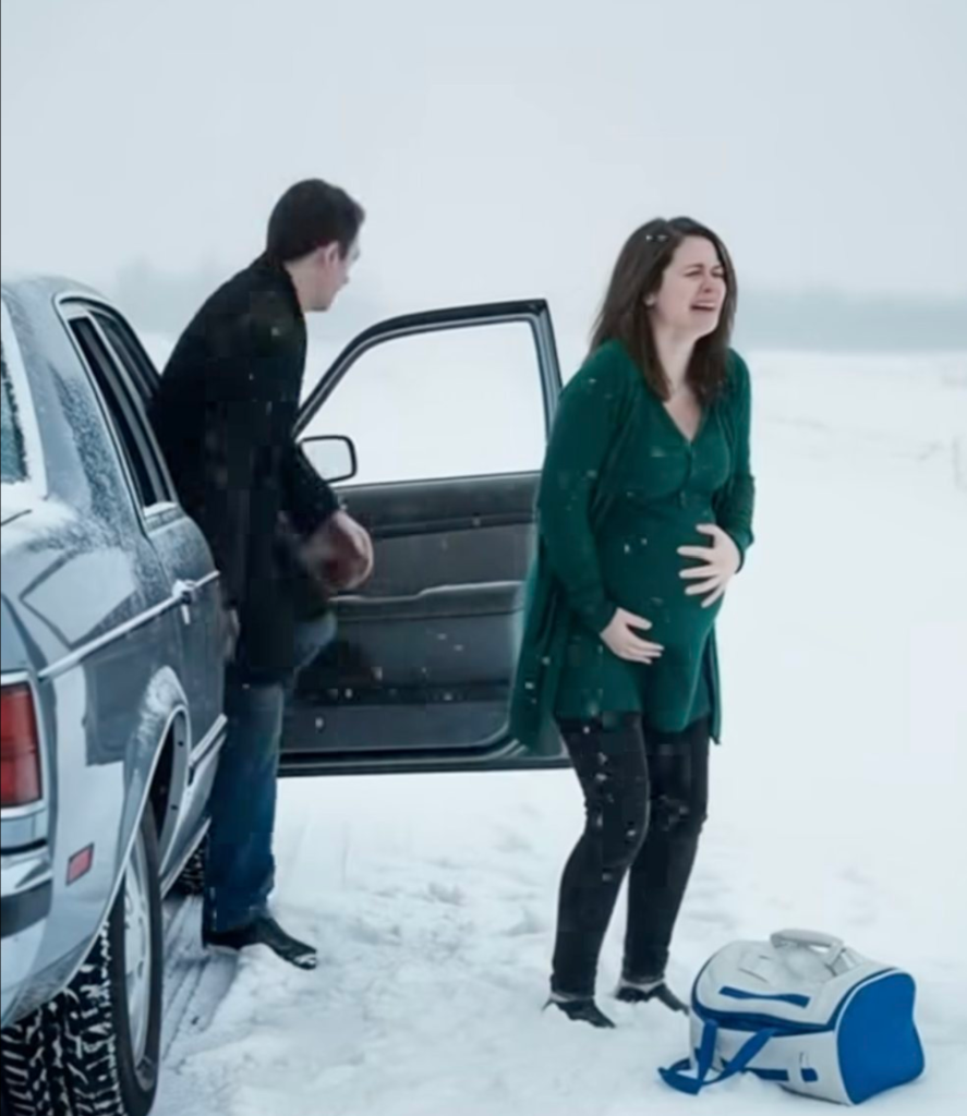 kantat av snödrivor som reste sig som frusna vågor. Trots värmen i bilen rös jag. Plötsligt – en skarp, snurrande smärta skar genom min mage, och jag tappade andan. „Han rör sig mycket idag…“ viskade jag. Greg bara morrade och stirrade envis rakt fram.