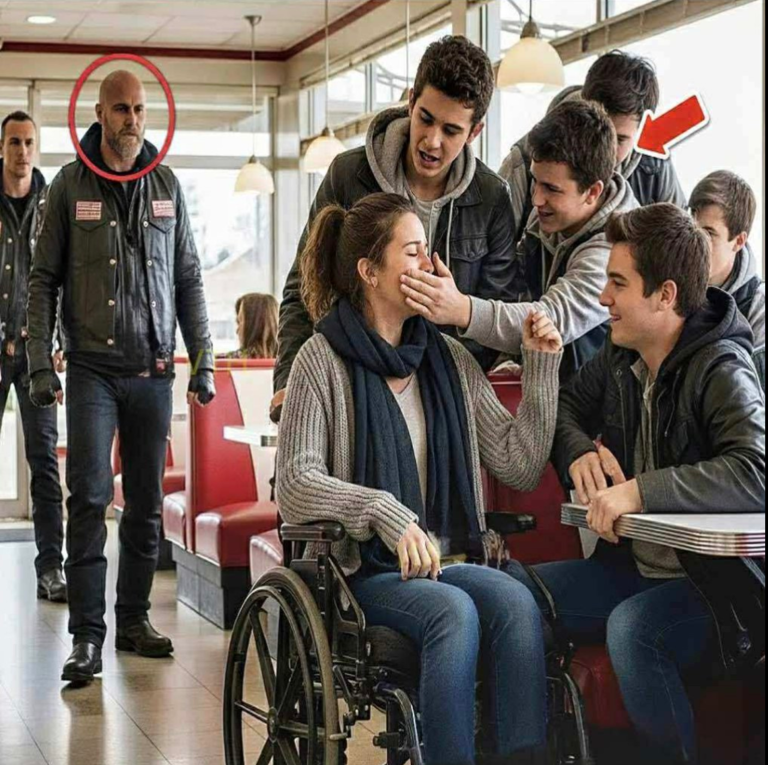 När dörren öppnades förändrades atmosfären omedelbart. Bikers fyllde rummet med sin närvaro – en blandning av rå styrka, hotfullhet, men också lugn självsäkerhet. Gästerna höll andan. Flickan drog sig instinktivt tillbaka, rädd att ännu en storm skulle drabba henne.