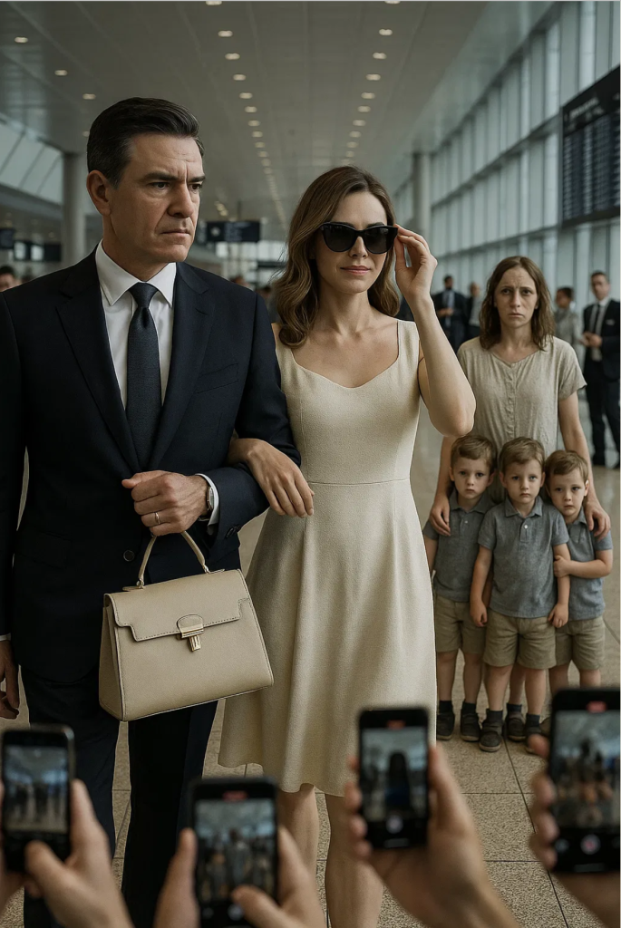 utan för att fånga ögonblicket.Victor följde den kollektiva blicken. Och han såg henne.Längst bort i hallen stod Evelyn – hans fru. Ansiktet blekt under terminalens ljus, sminklöst, alla illusioner blottade. Spåren av sömnlösa nätter och sorg låg kring hennes ögon.