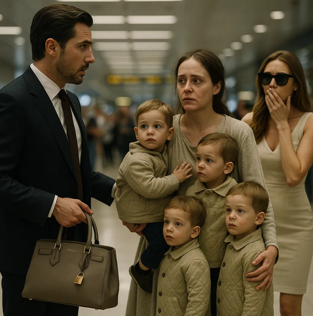 Alla höll sig fast vid hennes kjol, små händer som redan kände för många frånvaron. De var hans. Förståelsen slog inte ner som ny information, utan som en fysisk kraft som slet upp hans bröst.Handväskan gled från hans arm.