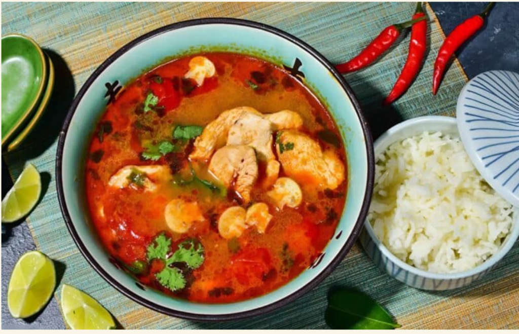 En servitör passerade med en ångande, röd, kryddig tom yum-soppa. Med ett snabbt, beslutsamt drag grep jag fatet och innan någon hann reagera hällde jag den heta soppan i hans ansikte. Skrik, kaos, chockade blickar från gästerna – allt slog mot oss samtidigt.