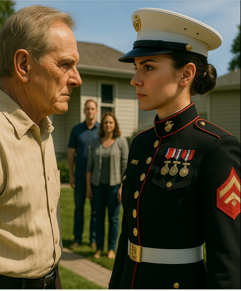 Att möta general Morgan, Tjugo år efter verandan stod min pappa vid vår port. Han mötte inte bara min rang, utan ett liv återuppbyggt, ett skafferi som matade grannar, ett barnbarn som lyssnade. ”Jag hade fel,” sa han.