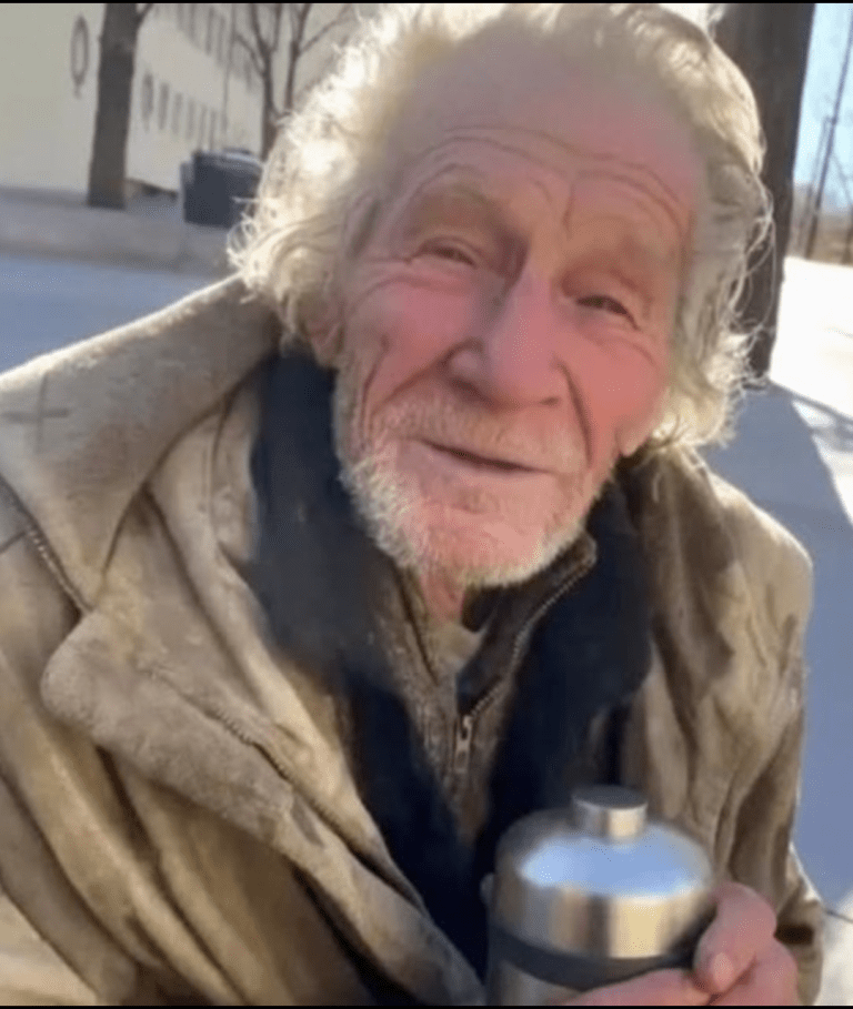 ” Nästa morgon tog jag med en smörgås och billigt kaffe till honom. ”Det är turkisk kyckling,” sa jag. ”Inget speciellt.” Han tog emot det med båda händerna och upprepade samma ord: ”Tack, ha en fin dag, kära du.” Det blev vår tysta, lilla ritual — jag klev av bussen, gav vad jag kunde,