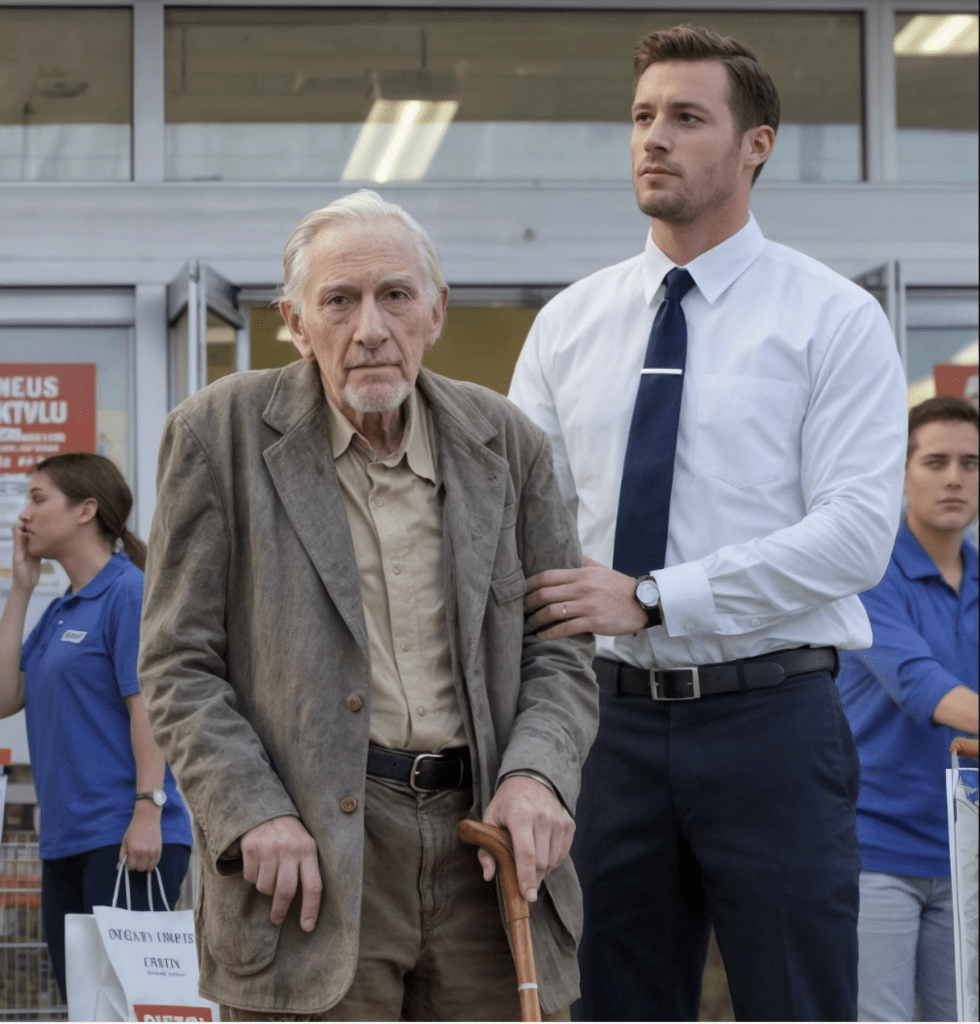 Sedan kom ord som sved hårdare än jag väntat:— Sir, ni måste gå. Kunder klagar.Det var Kyle Ransom, butikschefen. Jag hade befordrat honom för några år sedan, efter att han räddat ett sändning under en brand. Och nu såg han på mig som om jag var ingenting.